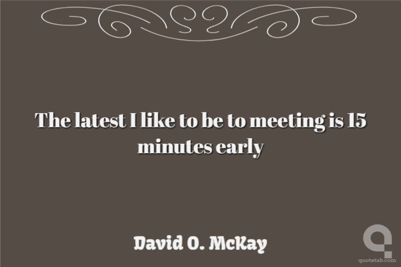 The latest I like to be to meeting is 15 minutes early David O. McKay