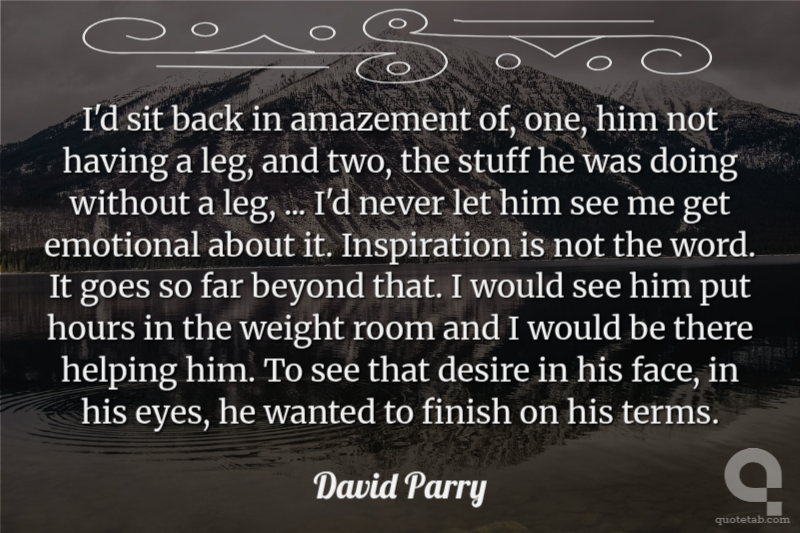 I'd sit back in amazement of, one, him not having a leg, and two, the stuff he was doing without a leg, ... I'd never let him see me get emotional about it. Inspiration is not the word. It goes so far beyond that. I would see him put hours in the weight room and I would be there helping him. To see that desire in his face, in his eyes, he wanted to finish on his terms. David Parry