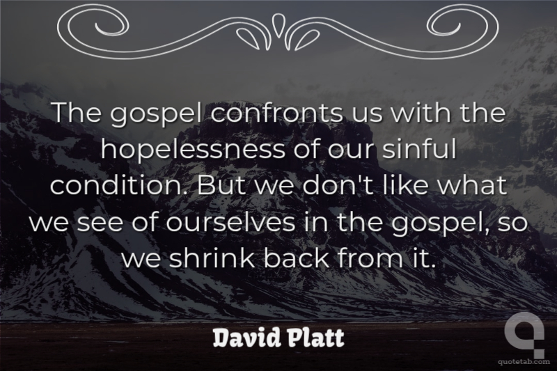 The gospel confronts us with the hopelessness of our sinful condition. But we don't like what we see of ourselves in the gospel, so we shrink back from it. David Platt