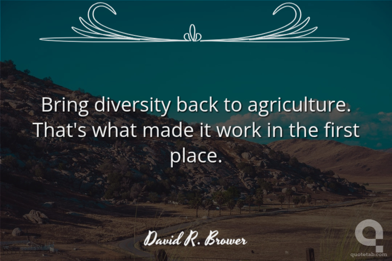 Bring diversity back to agriculture. That's what made it work in the first place. David R. Brower
