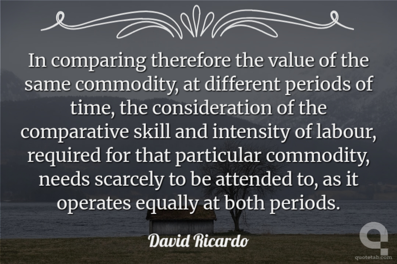 If the quantity of labour realized in commodities, regulate their exchangeable value, every increase of the quantity of labour must augment the value of that commodity on which it is exercised, as every diminution must lower it. David Ricardo