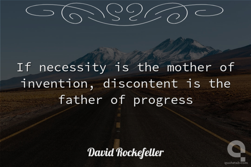 If necessity is the mother of invention, discontent is the father of progress David Rockefeller