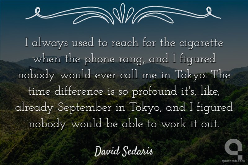 I always used to reach for the cigarette when the phone rang, and I figured nobody would ever call me in Tokyo. The time difference is so profound it's, like, already September in Tokyo, and I figured nobody would be able to work it out. David Sedaris