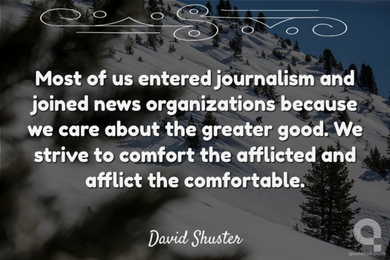 Most of us entered journalism and joined news organizations because we care about the greater good. We strive to comfort the afflicted and afflict the comfortable. David Shuster
