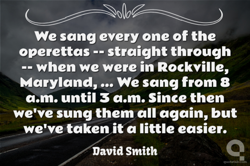 We sang every one of the operettas -- straight through -- when we were in Rockville, Maryland, ... We sang from 8 a.m. until 3 a.m. Since then we've sung them all again, but we've taken it a little easier. David Smith