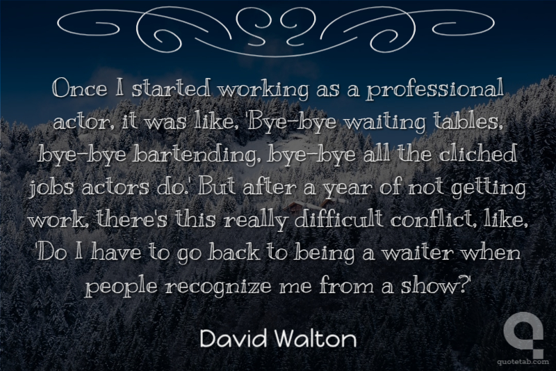 Once I started working as a professional actor, it was like, 'Bye-bye waiting tables, bye-bye bartending, bye-bye all the cliched jobs actors do.' But after a year of not getting work, there's this really difficult conflict, like, 'Do I have to go back to being a waiter when people recognize me from a show?' David Walton