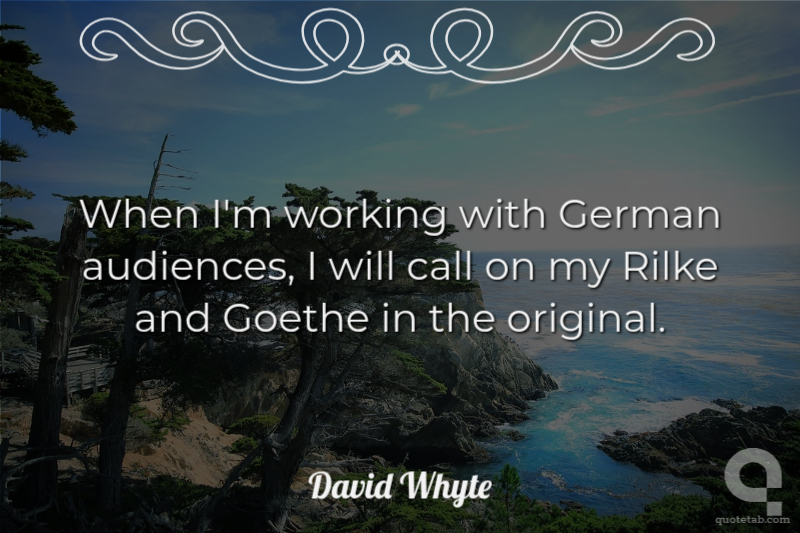 When I'm working with German audiences, I will call on my Rilke and Goethe in the original. David Whyte