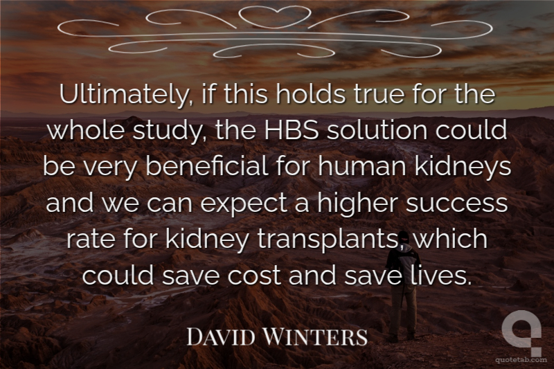 Ultimately, if this holds true for the whole study, the HBS solution could be very beneficial for human kidneys and we can expect a higher success rate for kidney transplants, which could save cost and save lives. David Winters