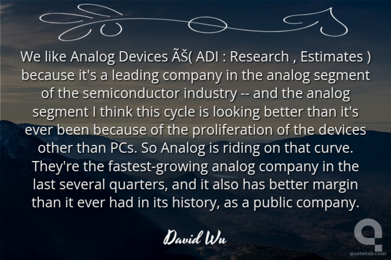 We like Analog Devices Ê( ADI : Research , Estimates ) because it's a leading company in the analog segment of the semiconductor industry -- and the analog segment I think this cycle is looking better than it's ever been because of the proliferation of the devices other than PCs. So Analog is riding on that curve. They're the fastest-growing analog company in the last several quarters, and it also has better margin than it ever had in its history, as a public company. David Wu