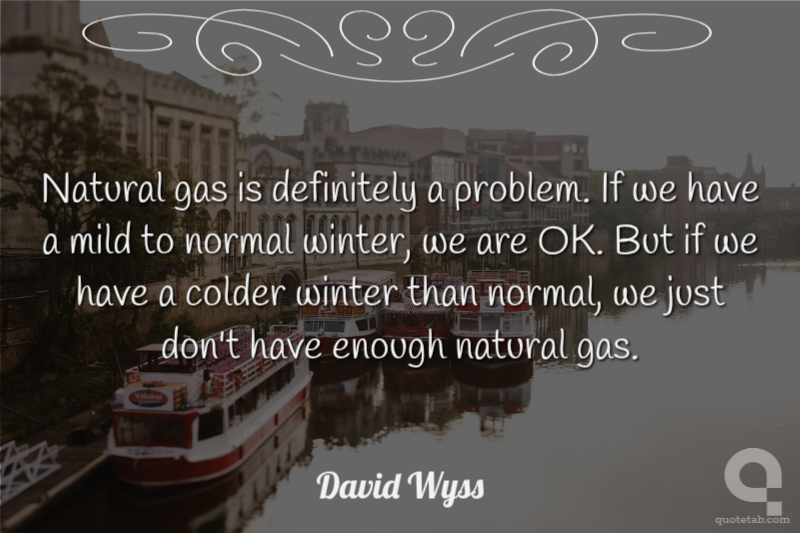 Natural gas is definitely a problem. If we have a mild to normal winter, we are OK. But if we have a colder winter than normal, we just don't have enough natural gas. David Wyss