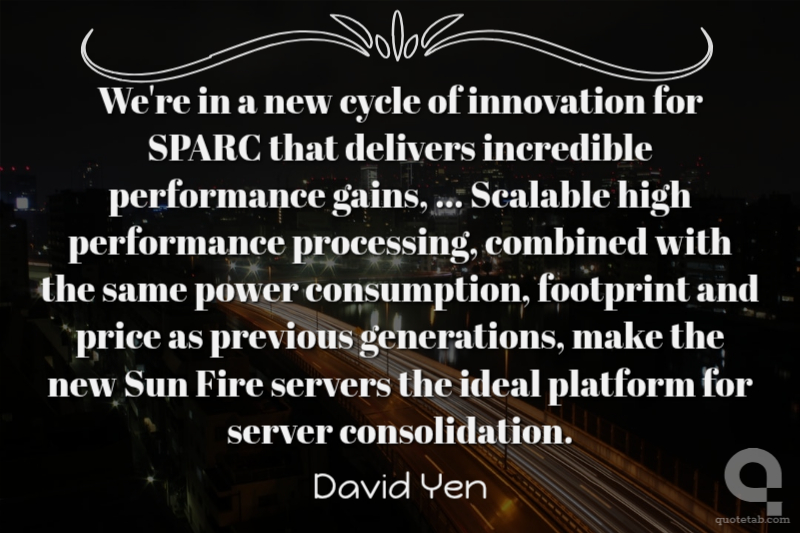 We're in a new cycle of innovation for SPARC that delivers incredible performance gains, ... Scalable high performance processing, combined with the same power consumption, footprint and price as previous generations, make the new Sun Fire servers the ideal platform for server consolidation. David Yen