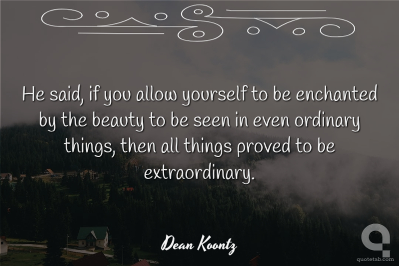 He said, if you allow yourself to be enchanted by the beauty to be seen in even ordinary things, then all things proved to be extraordinary. Dean Koontz