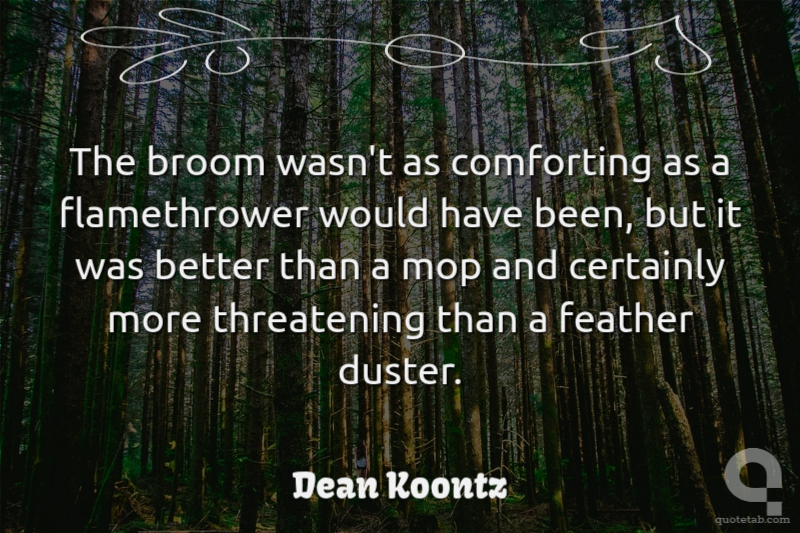 The broom wasn't as comforting as a flamethrower would have been, but it was better than a mop and certainly more threatening than a feather duster. Dean Koontz