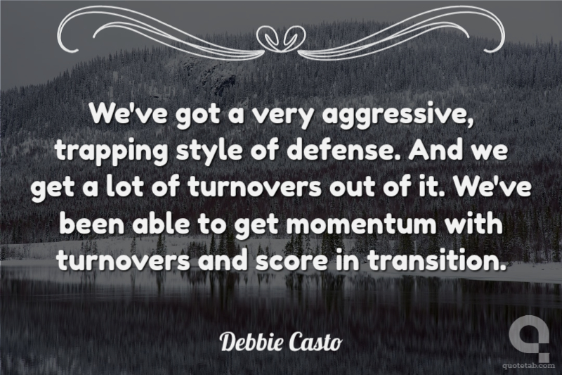 We've got a very aggressive, trapping style of defense. And we get a lot of turnovers out of it. We've been able to get momentum with turnovers and score in transition. Debbie Casto