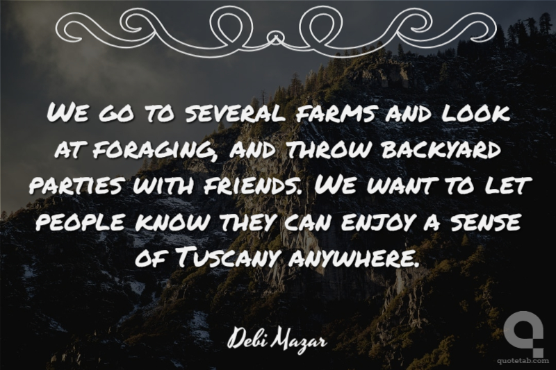 We go to several farms and look at foraging, and throw backyard parties with friends. We want to let people know they can enjoy a sense of Tuscany anywhere. Debi Mazar