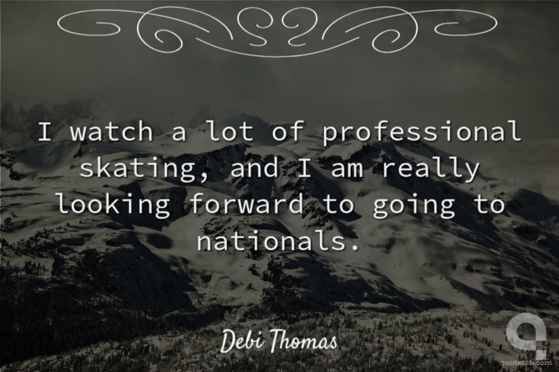 I watch a lot of professional skating, and I am really looking forward to going to nationals. Debi Thomas