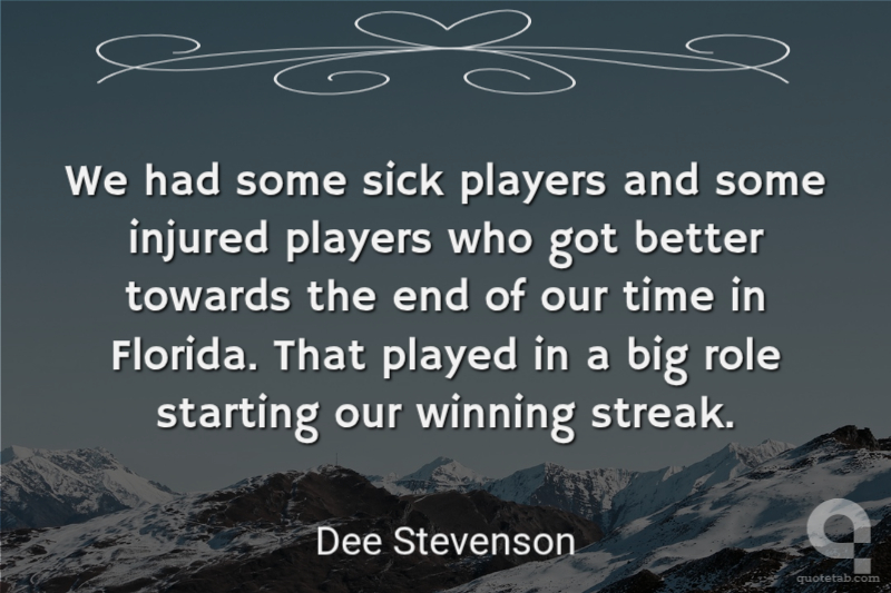 We had some sick players and some injured players who got better towards the end of our time in Florida. That played in a big role starting our winning streak. Dee Stevenson