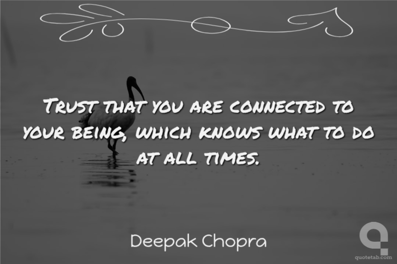 Trust that you are connected to your being, which knows what to do at all times. Deepak Chopra