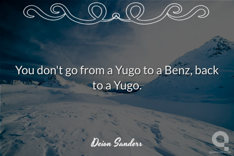 Deion Sanders You don't go from a Yugo to a Benz, back to a Yugo.