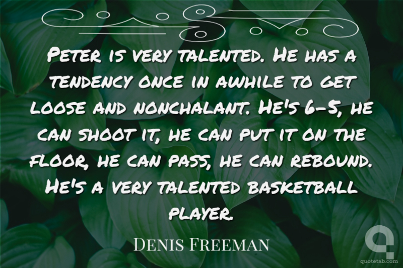 Peter is very talented. He has a tendency once in awhile to get loose and nonchalant. He's 6-5, he can shoot it, he can put it on the floor, he can pass, he can rebound. He's a very talented basketball player. Denis Freeman