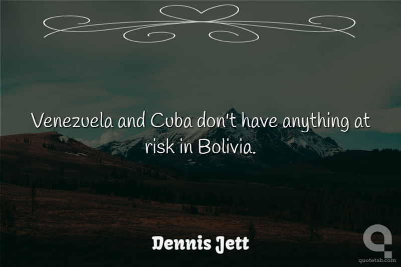 Venezuela and Cuba don't have anything at risk in Bolivia. Dennis Jett
