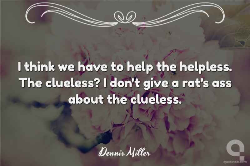 I think we have to help the helpless. The clueless? I don't give a rat's ass about the clueless. Dennis Miller