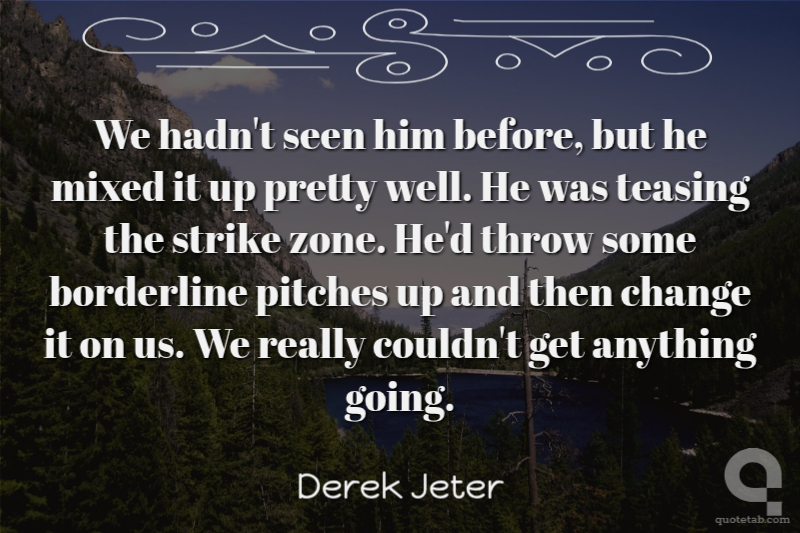 We hadn't seen him before, but he mixed it up pretty well. He was teasing the strike zone. He'd throw some borderline pitches up and then change it on us. We really couldn't get anything going. Derek Jeter