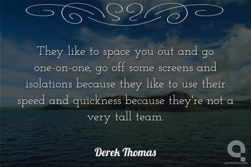 They like to space you out and go one-on-one, go off some screens and isolations because they like to use their speed and quickness because they're not a very tall team. Derek Thomas