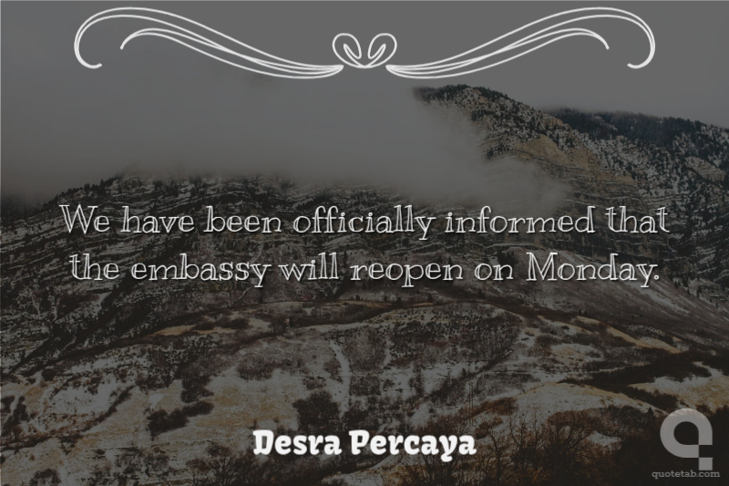 We have been officially informed that the embassy will reopen on Monday. Desra Percaya