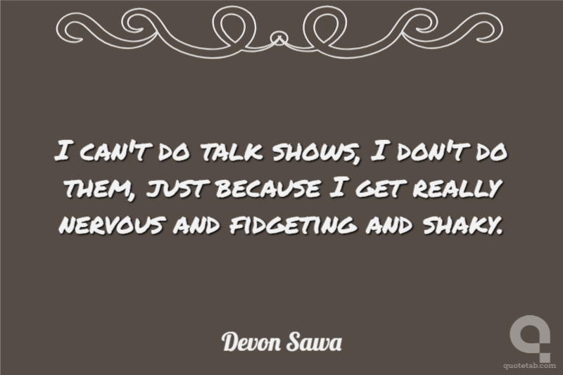 I can't do talk shows, I don't do them, just because I get really nervous and fidgeting and shaky. Devon Sawa
