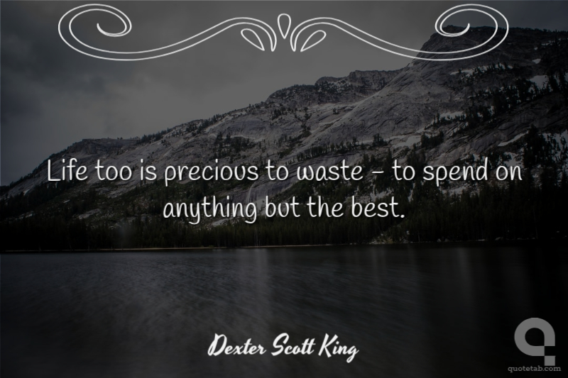 Life too is precious to waste - to spend on anything but the best. Dexter Scott King
