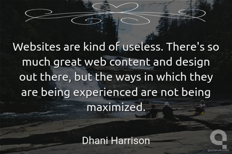 Websites are kind of useless. There's so much great web content and design out there, but the ways in which they are being experienced are not being maximized. Dhani Harrison