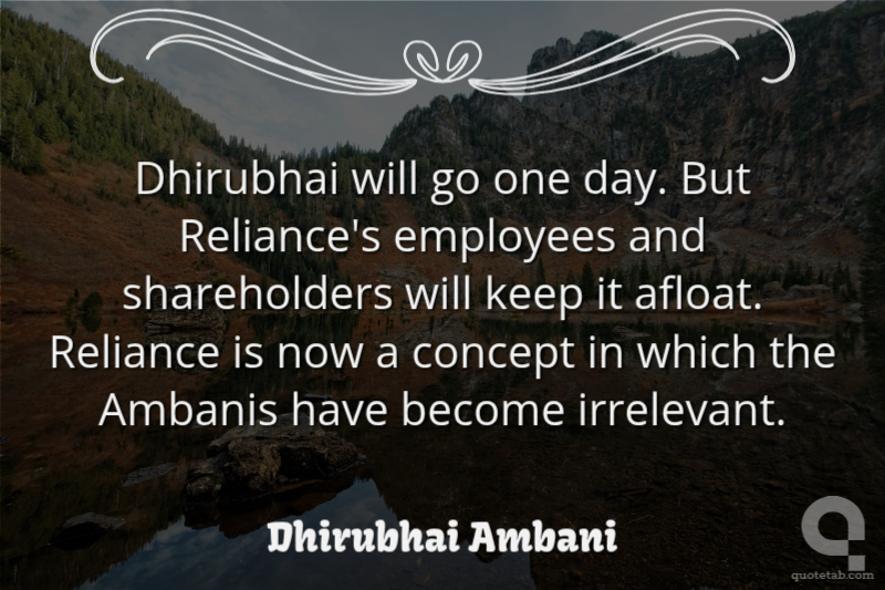 Dhirubhai will go one day. But Reliance's employees and shareholders will keep it afloat. Reliance is now a concept in which the Ambanis have become irrelevant. Dhirubhai Ambani