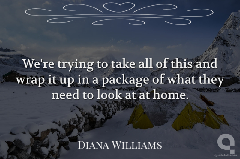 We're trying to take all of this and wrap it up in a package of what they need to look at at home. Diana Williams