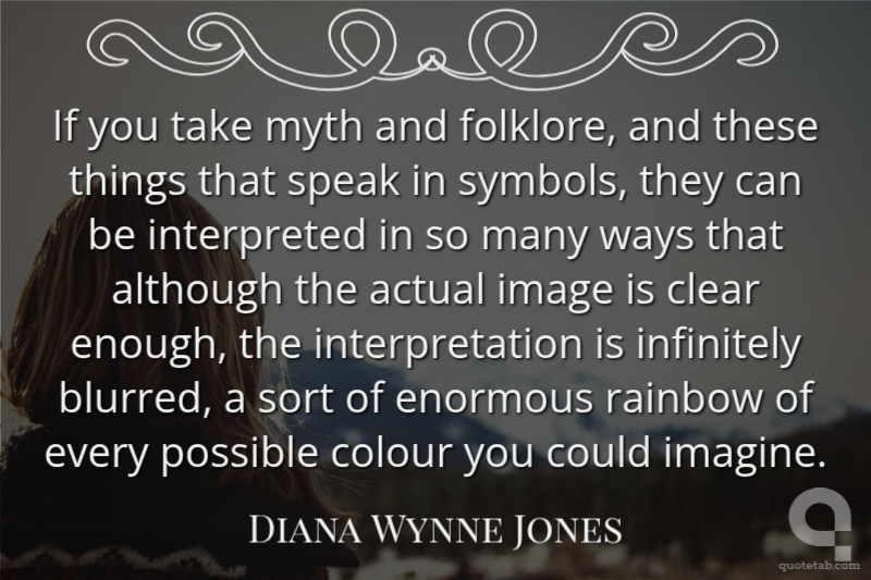 If you take myth and folklore, and these things that speak in symbols, they can be interpreted in so many ways that although the actual image is clear enough, the interpretation is infinitely blurred, a sort of enormous rainbow of every possible colour you could imagine. Diana Wynne Jones