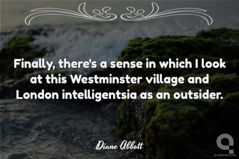 Finally, there's a sense in which I look at this Westminster village and London intelligentsia as an outsider. Diane Abbott