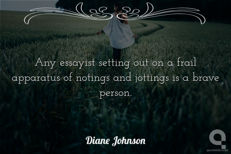 Any essayist setting out on a frail apparatus of notings and jottings is a brave person. Diane Johnson