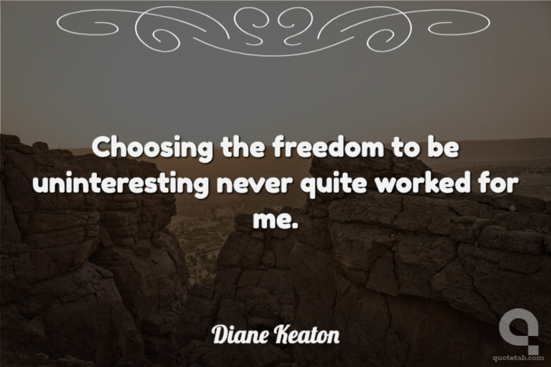 Choosing the freedom to be uninteresting never quite worked for me. Diane Keaton