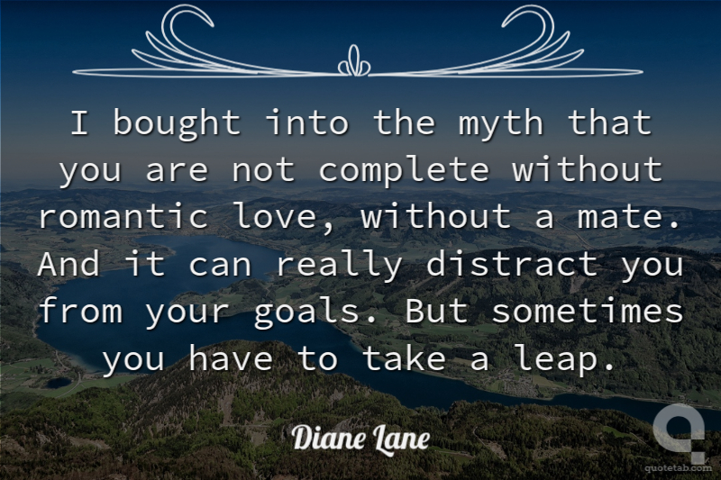 I bought into the myth that you are not complete without romantic love, without a mate. And it can really distract you from your goals. But sometimes you have to take a leap. Diane Lane