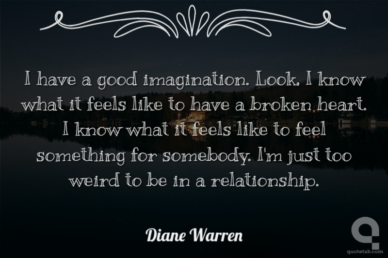 I have a good imagination. Look, I know what it feels like to have a broken heart. I know what it feels like to feel something for somebody. I'm just too weird to be in a relationship. Diane Warren