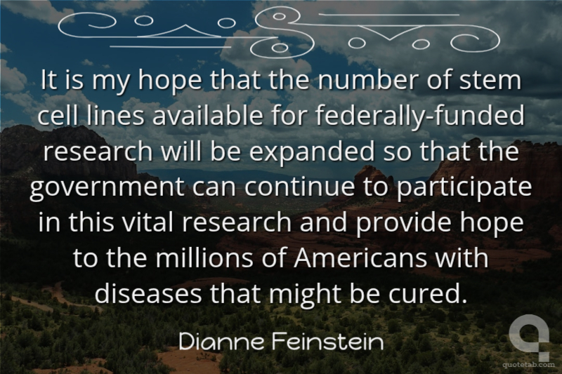 It is my hope that the number of stem cell lines available for federally-funded research will be expanded so that the government can continue to participate in this vital research and provide hope to the millions of Americans with diseases that might be cured. Dianne Feinstein