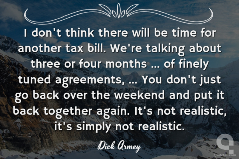 I don't think there will be time for another tax bill. We're talking about three or four months ... of finely tuned agreements, ... You don't just go back over the weekend and put it back together again. It's not realistic, it's simply not realistic. Dick Armey