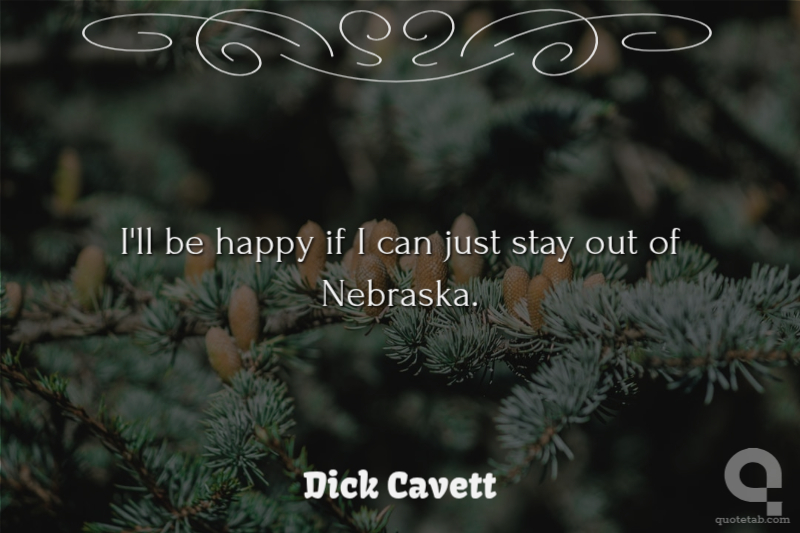 I'll be happy if I can just stay out of Nebraska. Dick Cavett