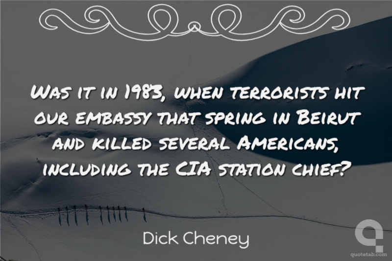 Was it in 1983, when terrorists hit our embassy that spring in Beirut and killed several Americans, including the CIA station chief? Dick Cheney