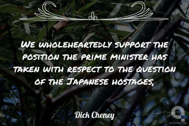 We wholeheartedly support the position the prime minister has taken with respect to the question of the Japanese hostages, Dick Cheney