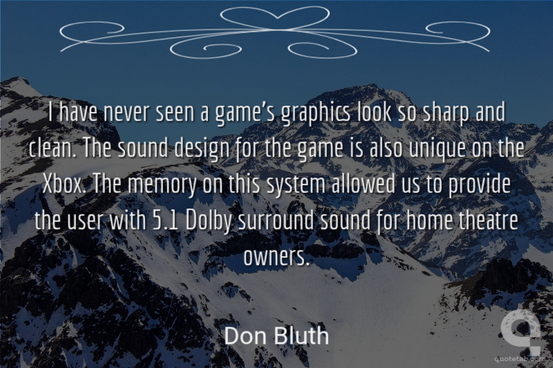 I have never seen a game's graphics look so sharp and clean. The sound design for the game is also unique on the Xbox. The memory on this system allowed us to provide the user with 5.1 Dolby surround sound for home theatre owners. Don Bluth