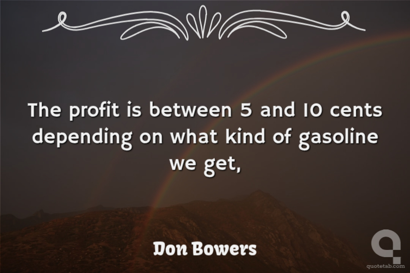 The profit is between 5 and 10 cents depending on what kind of gasoline we get, Don Bowers