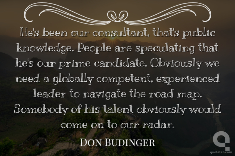 He's been our consultant, that's public knowledge. People are speculating that he's our prime candidate. Obviously we need a globally competent, experienced leader to navigate the road map. Somebody of his talent obviously would come on to our radar. Don Budinger