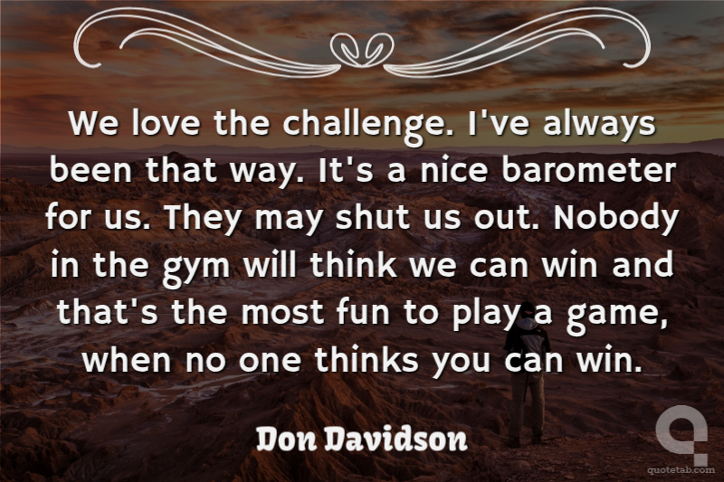 We love the challenge. I've always been that way. It's a nice barometer for us. They may shut us out. Nobody in the gym will think we can win and that's the most fun to play a game, when no one thinks you can win. Don Davidson