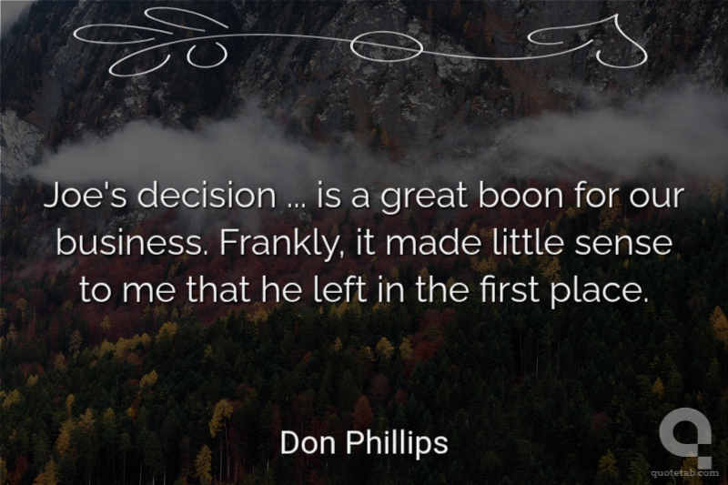 Joe's decision ... is a great boon for our business. Frankly, it made little sense to me that he left in the first place. Don Phillips